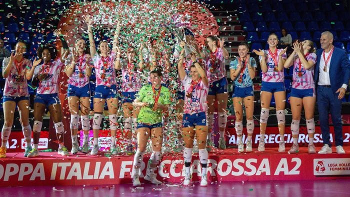 VOLLEY FEMMINILE. Sabato 14 febbraio, a Latisana, la squadra di Cominetti s’impone in 4 set sul campo delle friulane, rivali per la promozione in A1. Mvp della partita Pistolesi (20 punti), gran prova di Scharmann.