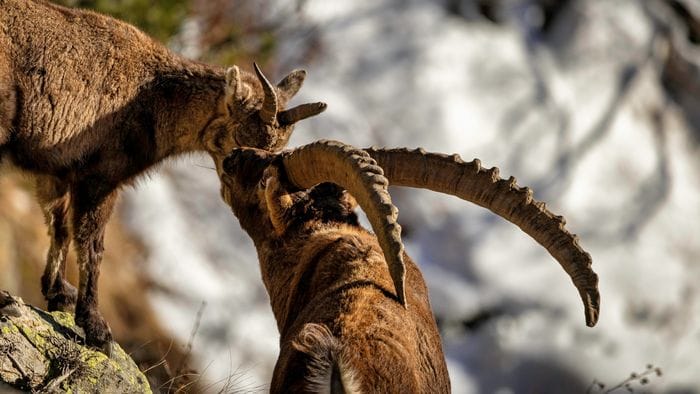«Due stambecchi si scambiano effusioni a una cinquantina di metri dal rifugio Curò»: la Foto del Giorno è di Paolo Mignani.