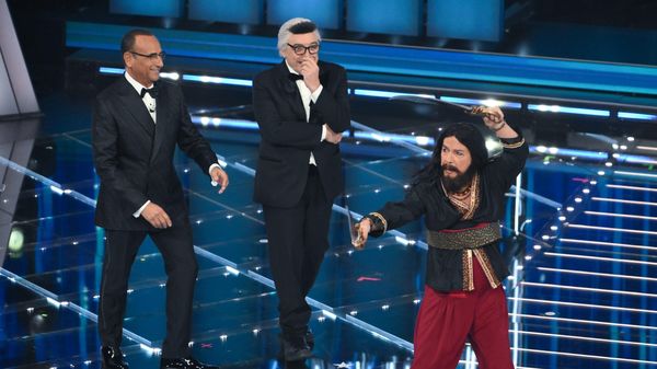 IL FESTIVAL. Sul palco in apertura della serata di sabato 28 febbraio ci sono Carlo Conti, Laura Pausini e la giornalista Giorgia Cardinaletti. «Difficile celebrare la canzone italiana mentre è in corso un conflitto in Iran dall’esito incerto». Poi il via alla gara dei 30 big: Frassica scherza sulle qualità di un direttore artistico e su Can Yaman.