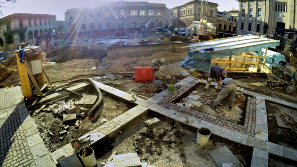 Il cantiere Iniziato l’allestimento sui 4mila metri quadri. Pietra al centro, ai lati losanghe e cubetti di porfido. Otto carpini a corona del Tritone restaurato e aiuole.