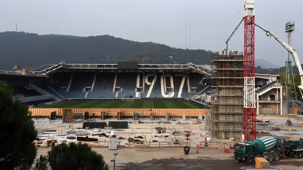 IL CANTIERE. Terminati i lavori di preparazione e copertura del parcheggio, sono già state realizzate le due torri per gli ascensori, ora le gradinate.