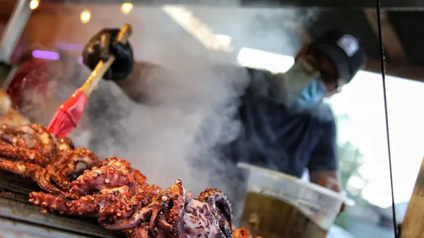 Condita con polpo, pesto di pomodori secchi, battuta di olive, mandorle, e prezzemolo e pecorino sardo. Una squisitezza che vi aspetta nel locale di Monterosso