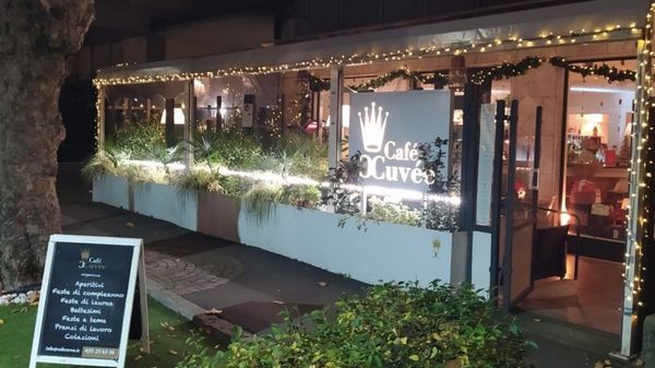 Le splendide lucine di Natale decorano la facciata esterna del Cafè Cuvée, in via XXIV Maggio a Bergamo. Il locale di Mauro Dolazza vi aspetta con diverse proposte per il Natale