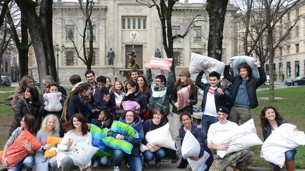 Per puro divertimento e possibilmente indossando il pigiama. Sabato pomeriggio alle 14.30 in piazza Dante a Bergamo si è combattuto la Pillow Fight, una lotta a cuscinate organizzata in occasione dell'International Pillow fight day.