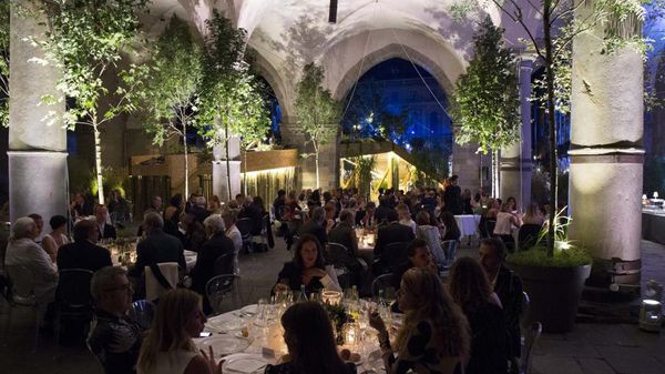 Scendendo dalla passerella che attraversa Piazza Vecchia, il portico di Palazzo della Ragione mercoledì sera era vestito d’alta moda per la cena che Tiziana Fausti ha organizzato all’interno della kermesse de I Maestri del Paesaggio di cui è sponsor.