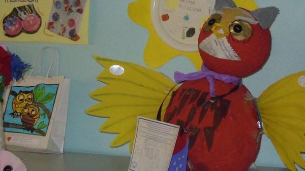 Un grosso gufo osserva chi attraversa i corridoi della Pediatria degli Ospedali Riuniti, in attesa di spiccare il volo verso il Festival dei Gufi di Grazzano Visconti, dove sarà ospite d'eccezione.