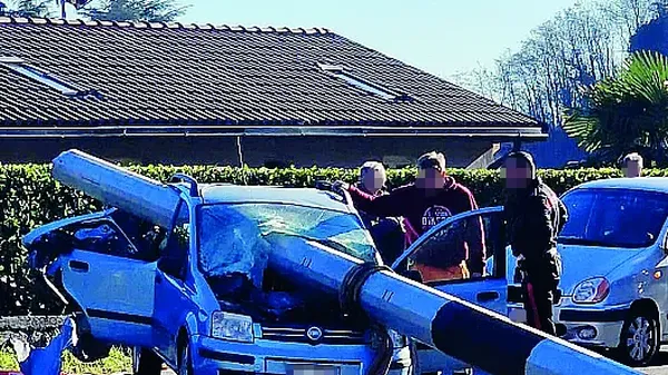 STROZZA. Il racconto della donna la cui auto è stata travolta da un tubo. La Panda distrutta, lei illesa. «Il palo mi è passato a pochi centimetri».