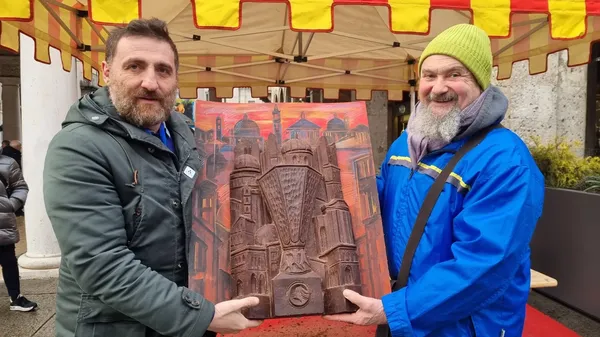 L’EVENTO. Con il tradizionale taglio della maxi tavoletta, lunga quest’anno ben 21 metri, è stata inaugurata giovedì 23 gennaio sul Sentierone la 12ª «Festa del cioccolato».
