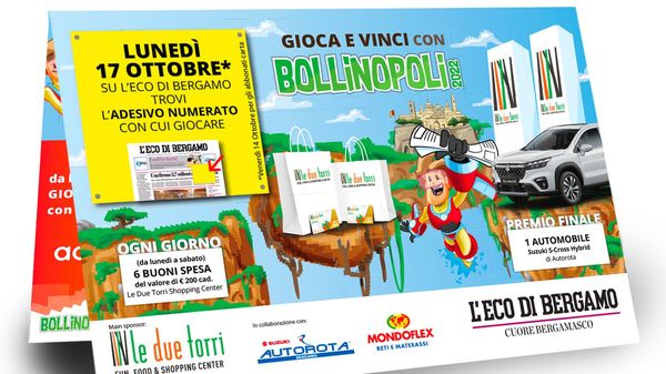 Il concorso. Sabato 15 ottobre e domenica 16, con L’Eco di Bergamo, troverete in edicola le cartelle su cui incollare i bollini di Bollinopoli, il concorso che vi darà la possibilità di vincere tantissimi premi.