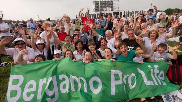 «Arriva, arriva». Nel settore 12 i genitori della Malpensata prendono in braccio i figli, i bambini sventolano le borracce di plastica azzurra dell'organizzazione, i piccoli addormentati nei passeggini si svegliano. Eccolo, Benedetto XVI, più bianco che mai.