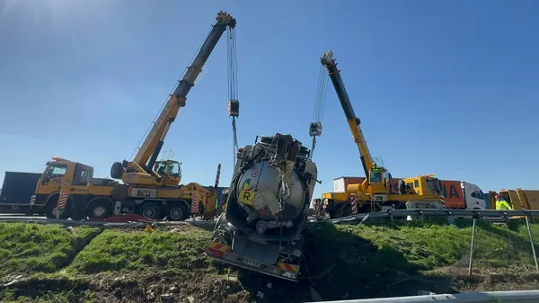 IN MATTINATA. Un camion è uscito dalla carreggiata lunedì 17 marzo alle 8 in autostrada al’altezza di Grumello, finendo ribaltato sulla massicciata che divide la A4 dalla provinciale. Due feriti, lunghe code in direzione di Milano per tutta la mattinata.