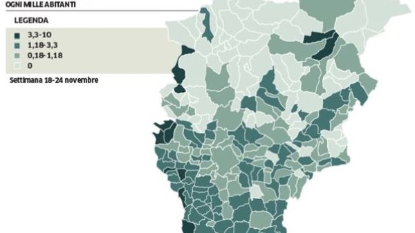I dati dei tamponi. Prosegue diffuso il calo dei contagi. La tendenza viene «frenata» nell’area trevigliese