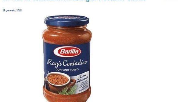 Se siete allergici a sedano e latte fate attenzione. Barilla ha ritirato dai supermercati il «Ragù Contadino» per errore di etichettatura.