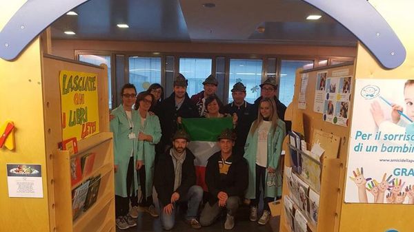 Le penne sul cappello hanno stupito i piccini e rallegrato i più grandi per un momento di festa e serenità tra le corsie dell’ospedale di Bergamo.