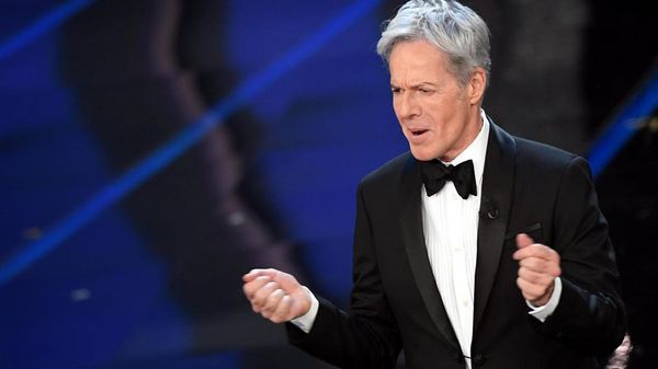 Claudio Baglioni intona, durante la conferenza stampa, alcuni canti alpini, per chiudere la polemica scatenata da una sua battuta «Non faremo un raduno degli alpini».
