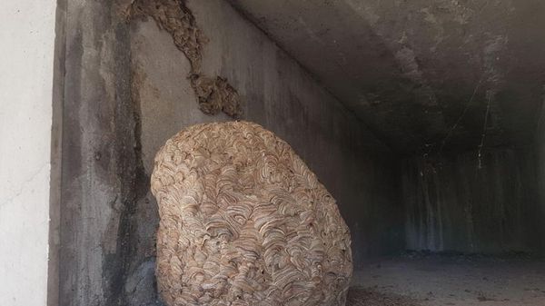Mattinata movimentata al cimitero di Semonte: un uomo al lavoro all’interno del campo santo ha notato in un loculo un favo di vespe grande più di un pallone da calcio.