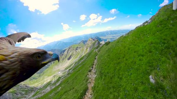 Grazie a una piccola telecamera Red Bull è riuscita a offrire la spettacolare prospettiva del volo di un’aquila sulle montagne del Nebelhorn, in Germania, a 2.224 metri.