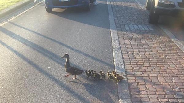 Dalmine, paperelle attraversano il viale Traffico fermo per farle passare