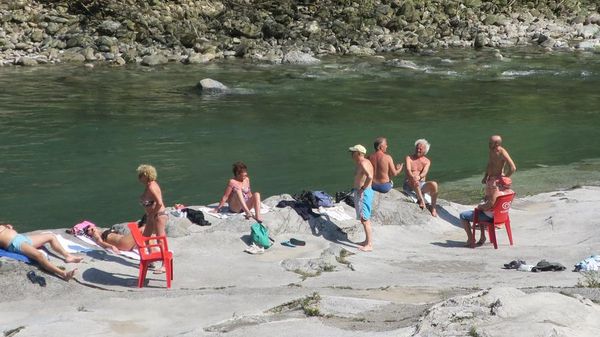 Le temperature da record di questi giorni hanno spinto i primi bagnanti a godersi il sole sul fiume Serio al Ponte del Costone.