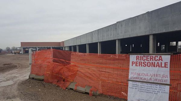 Il nuovo comparto commerciale sorgerà in via Bergamo, lungo la ex statale 42: sulla recinzione del cantiere anche l’avviso di ricerca personale.