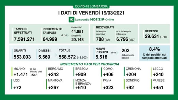 Bergamo, la curva si sta appiattendo Zucchi (Ats): «È il momento di tenere duro»