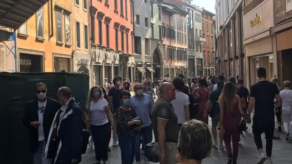 Boom di gente nelle vie del centro cittadino domenica mattina 24 maggio. Quasi tutti, comunque, indossavano la mascherina.