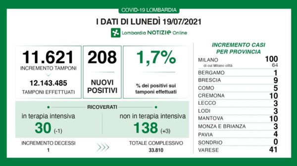 I dati delle ultime 24 ore sulla diffusione della pandemia in Lombardia.