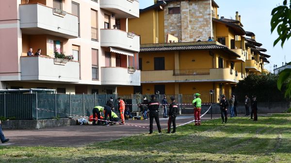 Grumello del Monte I labari delle penne nere sul sagrato della parrocchiale al funerale dell’imprenditore assassinato nel suo appartamento il 19 aprile. Presenti le due figlie e la ex moglie, oltre a molti amici e conoscenti.