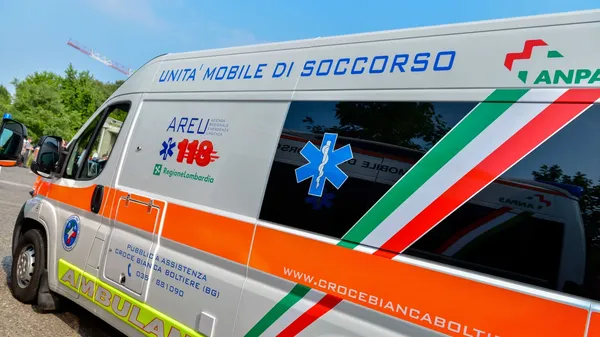 CARVICO. La mattina del 1° maggio all’esterno dell’Iperal. Immediato l’allarme: l’uomo è stato trasferito all’ospedale Papa Giovanni XXIII di Bergamo in codice rosso con una ambulanza del 118.