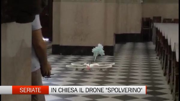 Per togliere le ragnatele dalla cupola e dalle vetrate della chiesa parrocchiale di Seriate è stato utilizzato un drone dotato di «spolverino». Il video del singolare intervento.