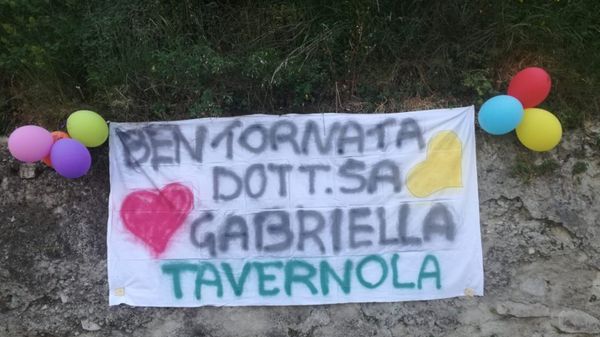 Campane a festa e striscioni di benvenuto per la dottoressa Gabriella Formenti, medico di famiglia di Tavernola, la «mamma della nostra salute», come ha scritto sui social il sindaco Ioris Pezzotti per annunciare il suo ritorno a casa.