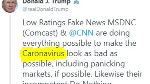 Ad agosto aveva chiamato «Giuseppi» il nostro premier Conte. Ma, evidentemente, Donald John Trump, presidente a stelle, strisce e svarioni, non era ancora contento, ed eccolo twittare sul problema sanitario del momento, definendolo “Caronavirus”.