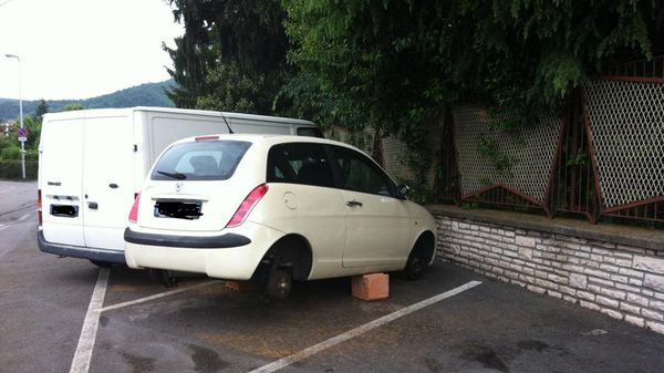 Lo sfogo di un lettore che ha trovato un’auto parcheggiata nella strada di casa senza le quattro gomme.