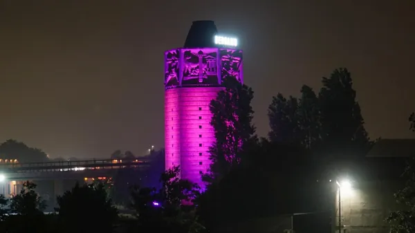 LA CURIOSITÀ. Di sera il palazzo comunale viene illuminato con il colore della kermesse ciclistica.