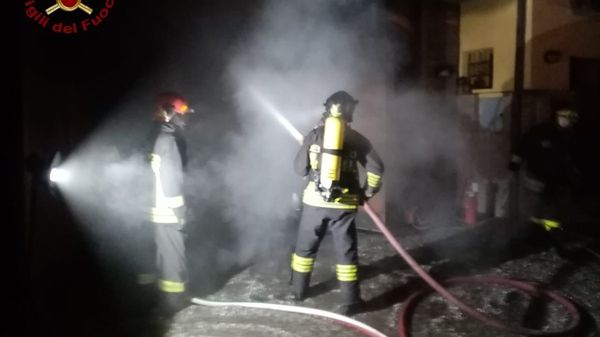 Incendio nella notte tra martedì 19 e mercoledì 20 ottobre in un deposito a Barbata. I Vigili del fuoco hanno spento le fiamme e tratto in salvo i tre cani che erano all’interno della struttura.