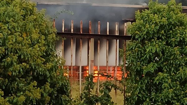 A bruciare due capannoni e un’autofficina vicina, nella zona industriale: alte fiamme e una nube di fumo grigio sopra la Bassa Bergamasca.