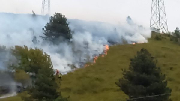 Fiamme nella zona di Ponte Nossa, nei pressi della strada che porta alla Val del Riso.