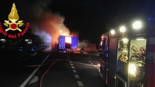 Il mezzo pesante, che trasportava buste per la spesa, è andato a fuoco e il traffico è andato in tilt.