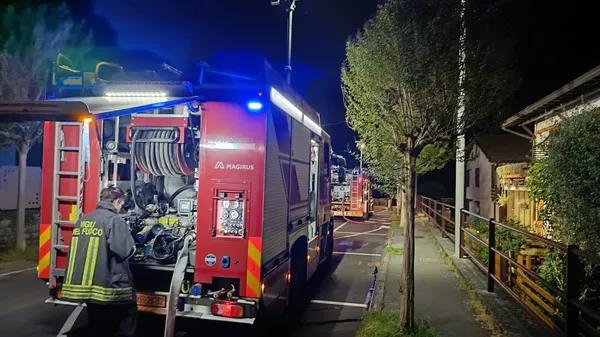 Brucia una canna fumaria, vasto incendio su un tetto a Cene. nessun ferito ma dieci squadre dei vigili del fuoco per spegnere le fiamme.