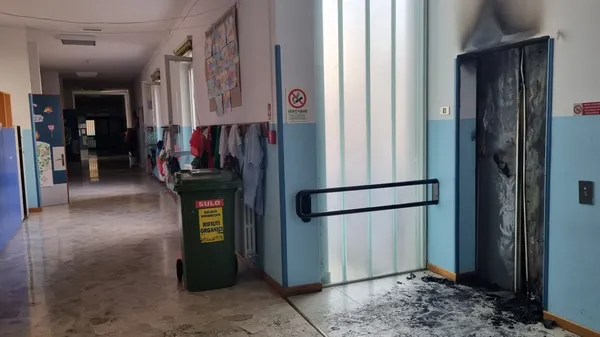 IL ROGO. Le fiamme nel vano ascensore: l’incendio quando la scuola primaria pubblica era chiusa, alle 4 del mattino di martedì 5 novembre. Bambini a casa almeno fino a giovedì.