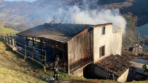 L’INCENDIO. Non si registrano feriti. Sul posto un’autoscala, un’autobotte e due pick-up, da Clusone e Gazzaniga.