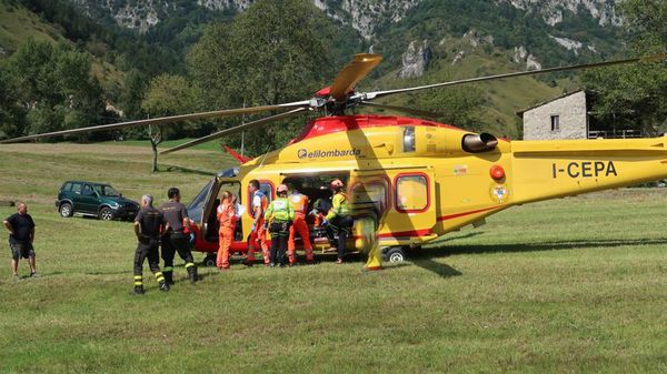 Elisoccorso in azione a Taleggio: un 54enne sarebbe in gravi condizioni in seguito a un scontro con un’auto nei pressi di Sottochiesa.