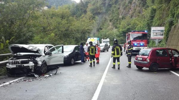 Due persone sono rimaste ferite nello scontro tra due auto sulla strada provinciale della Valle Brembana all’altezza di Sedrina.