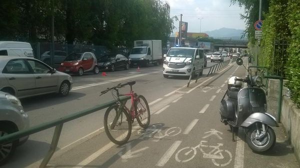 Bergamo. Un incidente è avvenuto verso le 12 e un’altro alle 13 di lunedì 18 giugno nei pressi del campo sportivo Coni prima di arrivare al Rondò delle Valli.