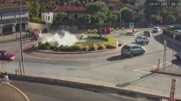 Freni bloccati, auto finisce nella fontana Sarnico, il «tuffo» è spettacolare - Video