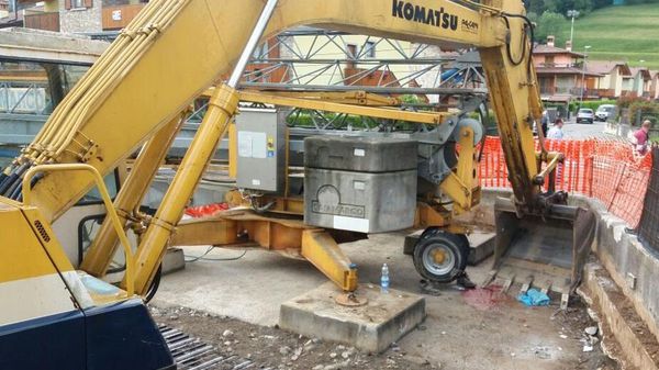Stava lavorando al montaggio di una gru, quando la benna di un escavatore è ceduta e lo ha ferito seriamente ad una gamba.