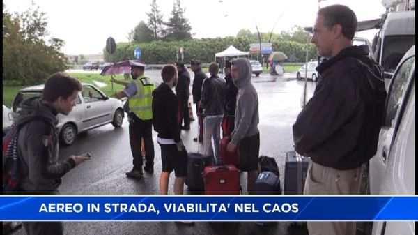 E l'aereo che occupa tutta la carreggiata della strada a causato soprattutto in mattinata caos e disagi per la viabilità in tutta la zona.