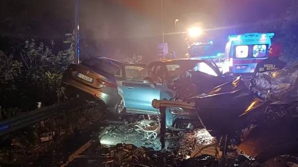L’INCIDENTE. I veicoli trasformati in un cumulo di lamiere e sei persone coinvolte.