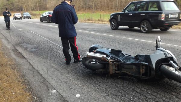 L’incidente a Fiorine di Clusone poco dopo le 8 di domenica 12 marzo. L’uomo è caduto dallo scooter per evitare di investire un cane sulla strada.