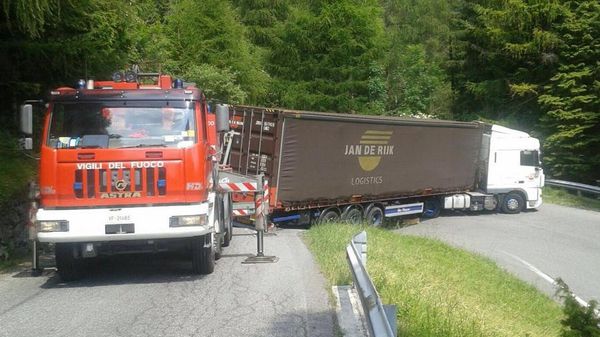 Nella mattinata del 30 giugno un camion è rimasto bloccato all’altezza di uno dei tornanti sulla strada del Passo della Presolana.